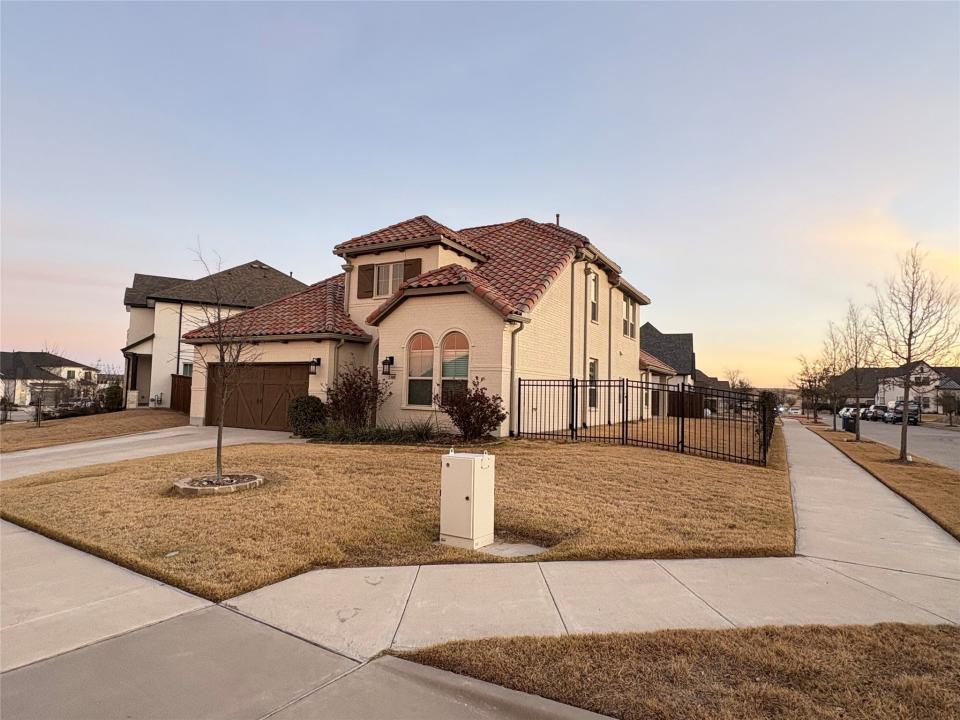 Welcome to your new community, WALSH RANCH, in Aledo, TX, with this beautiful captivating 5 bedroom home with a front study. This luxurious home features high-end upgrades and offers over 3,300 square feet of thoughtfully designed living space. With 5 spacious bedrooms plus a front study or an office. Multiple living areas, this home perfectly balances elegance and functionality. The gourmet kitchen is a chef’s dream, boasting a quartz counter with multiple drawers and cabinets spaces in the kitchen island. It opens seamlessly to the expansive living area, highlighted by 20 feet ceiling with a fireplace—ideal for entertaining. The main level includes a spacious primary suite with a spa-like ensuite bath featuring separate vanities, a walk-in shower, freestanding soaking tub, and an oversized walk-in closet. Also on the first floor are a guest suite, formal dining room, and a dedicated home office. Upstairs, enjoy three additional bedrooms with a Jack & Jill Bathroom, and a second living area. The covered back patio is plumbed for gas connections, offering endless potential for outdoor living. This meticulously upgraded home offers luxury, comfort, and style. Front yard mowing, high speed internet and lots of amazing amenities are included for tenant's enjoyment.