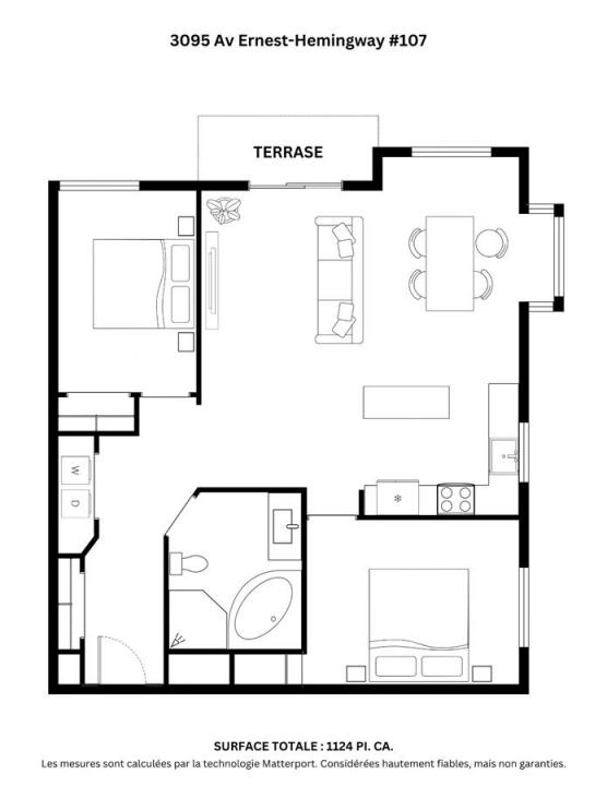Spacious 1125 sqft corner condo with abundant natural light and an open living area flowing to a private outdoor terrace. Featuring 2 bedrooms, 1 bathroom, indoor parking and storage space. Located in the desirable Bois-Franc/New Saint-Laurent area, directly across from Parc Philippe-Laheurte with tennis, soccer, children's playground and splash pad, as well as plenty of green space. Close to groceries, schools, Côte-Vertu metro and the REM station for effortless commuting. Enjoy a vibrant, family-friendly neighbourhood with parks, transit and local amenities nearby.