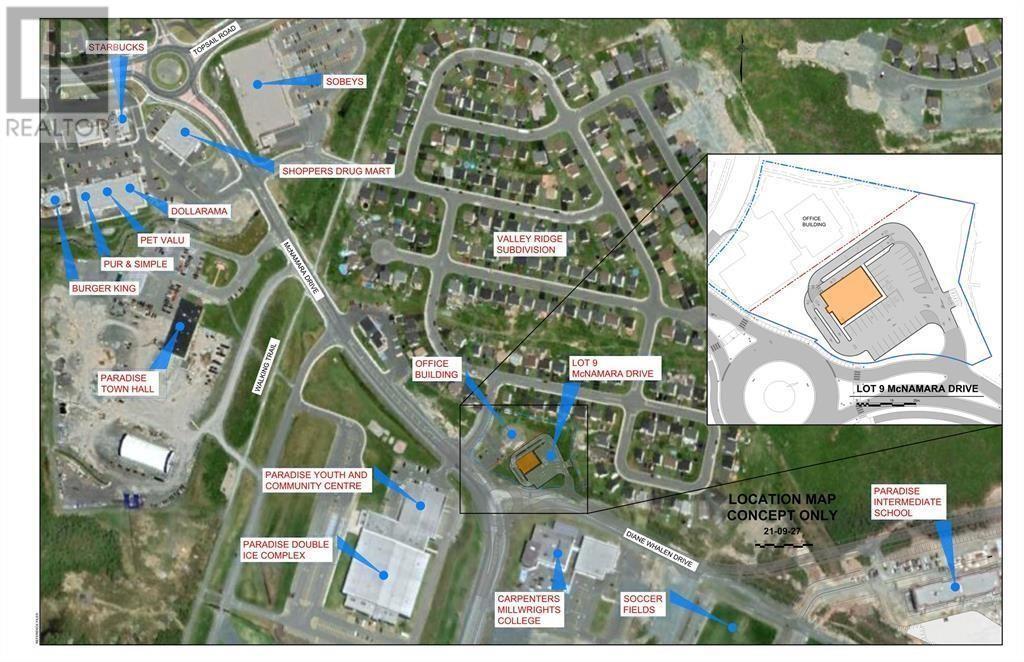 Excellent commercial location in the center of a bustling district of Paradise. Located on the corner of McNamara Drive and Dianne Whelan Drive, this location has a proven traffic count that continues to grow year by year with many businesses, recreation facilities, walking trails and schools within walking distance. This location is ideal for a multitude of business including retail, professional offices, restaurants (drive-thru options available), warehouses, and recreation. Pictures indicate a variety of concept plans that would suit a wide range of businesses. (id:42016)
