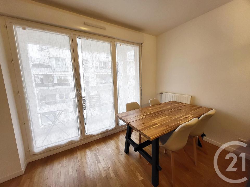 ATLANTIS - rue Magellan - A 700m de la gare Massy RER B et C et TGV, un appartement de type F3 loué en meublé au sein d'une résidence de standing de 2009. Il vous offre : entrée, séjour avec balcon de 4m², cuisine semi ouverte aménagée et équipée (four, plaques, réfrigérateur, machine à laver), dégagement avec placards, deux chambres chacune avec placards, salle de bains, WC indépendant.
