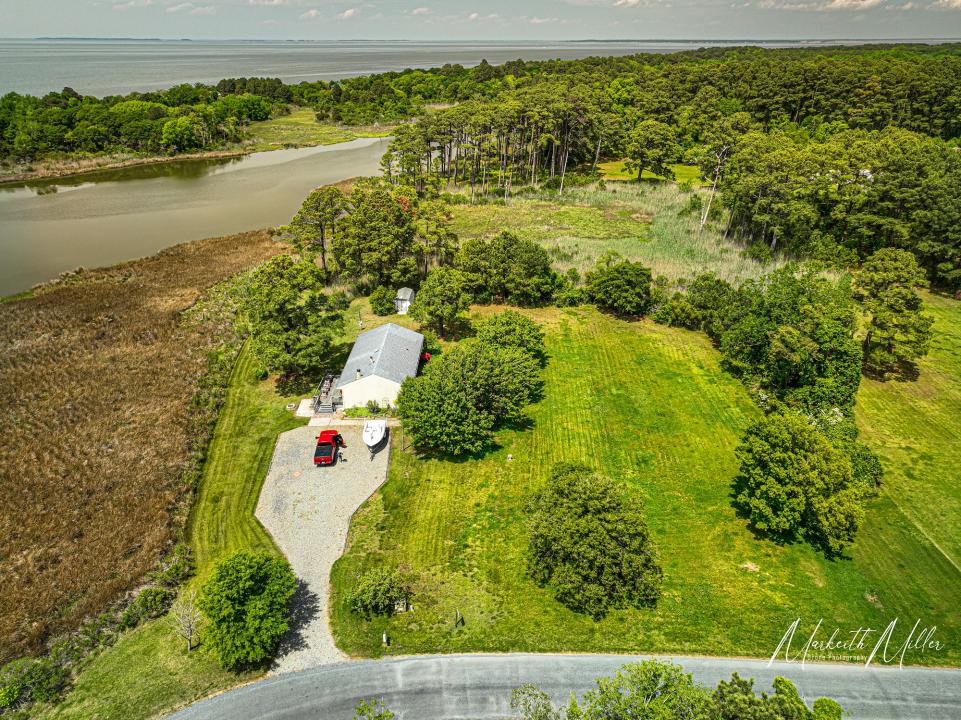 Waterview! This charming rancher offers serene living on a 2-acre lot overlooking Haines Pond and the Tangier Sound , surrounded by the beauty of nature and breathtaking sunsets over the Chesapeake Bay. Enjoy daily sightings of eagles, osprey, herons, and other wildlife (plus the famous Skipjacks) right from your own property. Outdoor recreation is right at your doorstep. Kayak or paddle on the pond or Tangier Sound, take a short bike ride to nearby public beach, catch crabs from the small bridges just feet from the property, or walk to Scott’s Cove Marina. A public boat ramp is also nearby, making it easy to enjoy everything the Chesapeake Bay has to offer. Inside, easy-care laminate flooring flows throughout the home, while the updated kitchen and replacement windows provide modern comfort and efficiency. This unique property perfectly blends the tranquility of waterfront living with convenient access to local coastal activities. Whether you're seeking a peaceful second home, an income-generating Airbnb, or a full-time residence immersed in nature, this property offers the perfect retreat.