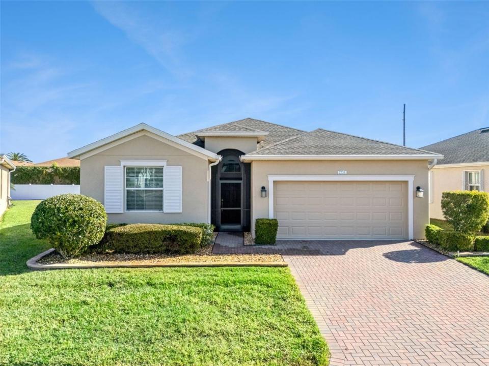 This meticulously maintained 3-bedroom, 3-bath home showcases eco-smart features and true pride of ownership, all within the sought-after 55+ gated community of Traditions. Thoughtfully designed and beautifully upgraded, this residence offers comfort, efficiency, and a relaxed Florida lifestyle. Upon arrival, you’re greeted by Florida-friendly landscaping accented with stone curb edging and a decorative paved walkway. The welcoming foyer features a transom window and a convenient coat closet. The spacious living and dining areas offer an open-concept layout enhanced with tile flooring—ideal for entertaining. Oversized sliding glass doors open to an extended screened-in lanai, seamlessly expanding the living space outdoors. The well-equipped kitchen features 42" upper cabinetry trimmed with crown molding, a stainless steel appliance package, and a walk-in pantry to meet all your culinary needs. A center island adorned with quartz countertops perfectly complements the glass tile backsplash, adding both function and style. The generously sized primary bedroom suite is a luxurious retreat, offering wall-to-wall carpeting and dual walk-in closets. The primary bath impresses with a handicap-accessible tiled shower featuring decorative listello tile, a comfort-height double-sink vanity, and a linen closet. A junior bedroom suite includes a private en-suite bath with a comfort-height vanity and quartz countertop—ideal for guests or extended stays. Step outside to your private oasis, where the paved screened lanai provides a peaceful setting for outdoor entertaining. This premium lot with no rear neighbors enhances privacy and tranquility. Additional Features & Upgrades Screened-in front entrance with paved walkway, Smart thermostat and smart home technology, Hybrid water heater, Low-E double-pane windows, Ring doorbell and MyQ garage door opener, Laundry room with washer and dryer, In-wall pest control system and termite bait traps, Exterior carriage lighting, Gutters, Two-car garage with epoxy finished floor. The picturesque Community of Traditions offers Planned Community Activities and an array of amenities such as a Lake Front Clubhouse, Dock & Boat Ramp, Heated Swimming Pool and Spa, Ballroom, Billiards, Meeting Room, Library, Computer Room, Craft Room, Dog Park, Tennis Courts, Basketball Court, Bocce, Shuffleboard, Fitness Center, and Aerobics Studio. Conveniently located near Shopping, Restaurants, Legoland and Major Routes, this home offers the perfect combination of luxury, comfort, and convenience.