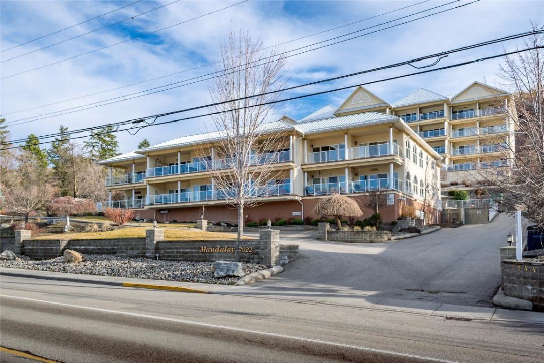 Stunning TOP FLOOR CORNER UNIT in the highly sought after Mandalay with unobstructed breathtaking views of Okanagan Lake! This elegant Mediterranean Style residence provides 2 bedrooms, 2 bathrooms PLUS den! The spectacular 1426 SF of living features an open concept, beautiful hardwood flooring throughout & an abundance of natural light from the large arched windows & expansive glass panels and patio doors. The spacious kitchen boasts s/s appliances, ample cabinetry and granite countertop w/eating bar. The elegant dining room and living room w/fireplace provides gorgeous views plus access to the lovely covered deck! The primary bedroom, very generous in size, offers peaceful morning views of the lake, access to the balcony, a walk-in closet, armoire and luxurious 5 piece ensuite. The sizeable second bedroom is located right beside the main 4 piece bathroom w/cheater ensuite door access and across the hall from the den. The entire unit was recently professionally painted! 2 PARKING STALLS in the secured heated underground parkade PLUS STORAGE LOCKER! Visitor parking right outside the unit. Amenities include a heated pool, hot tub, well-equipped gym & beautifully landscaped grounds! Enjoy walking across the street to the Vernon Yacht club w/only a few minutes walk to the beach!