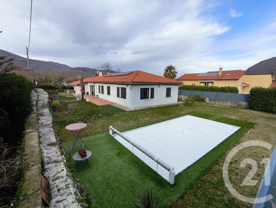 FOIX - Cette superbe maison de 131m² habitables vous accueille avec un séjour de 41m² lumineux s'ouvrant sur une grande terrasse, une cuisine séparée, cinq chambres, permettant de répondre aux besoins d'une famille, une salle de bains avec douche et baignoire, un WC indépendant et une buanderie accessible par le garage. Chauffage au gaz de ville, poêle à bois et climatisation. Classement énergétique enC.