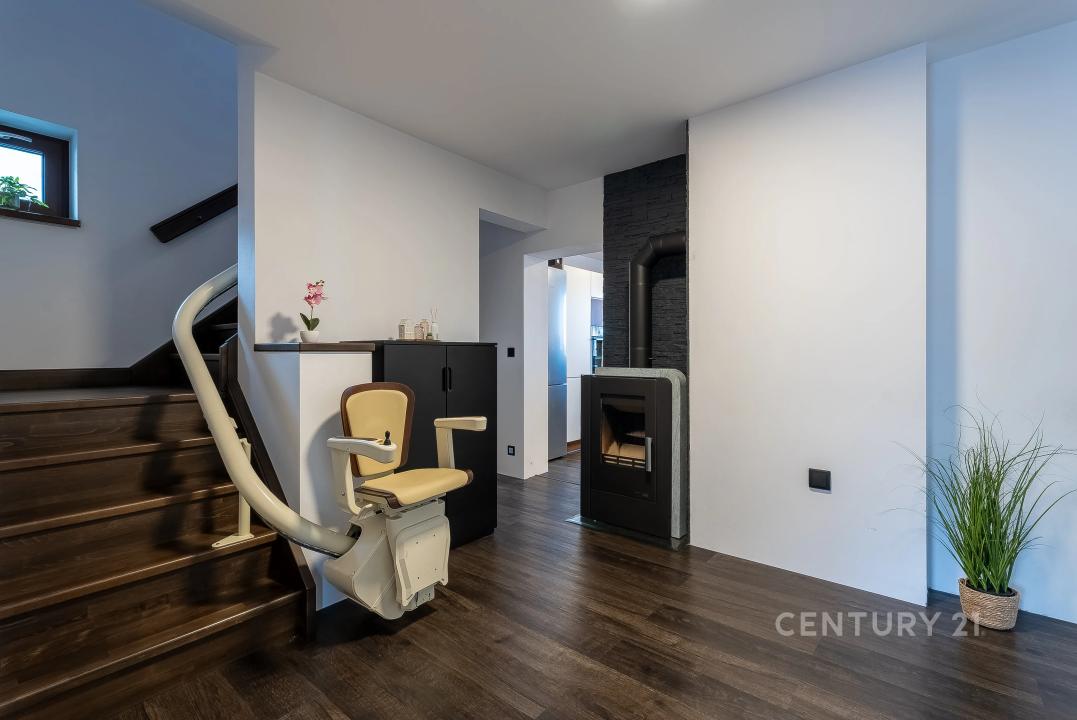 Zásadní předností tohoto domu je důraz na bezbariérové užívání, díky čemuž je nemovitost vhodná nejen pro rodiny s dětmi, ale i pro seniory či osoby se sníženou pohyblivostí. Přístup do domu je vyřešen dlážděným nájezdem a venkovní plošinou pro vozíčkáře, uvnitř pak překonání pater zajišťuje schodišťový výtah. Dům je také celopodsklepený, přičemž suterén o velikosti 44,5 m² nabízí velkorysý úložný prostor nebo místo pro dílnu a hobby aktivity.