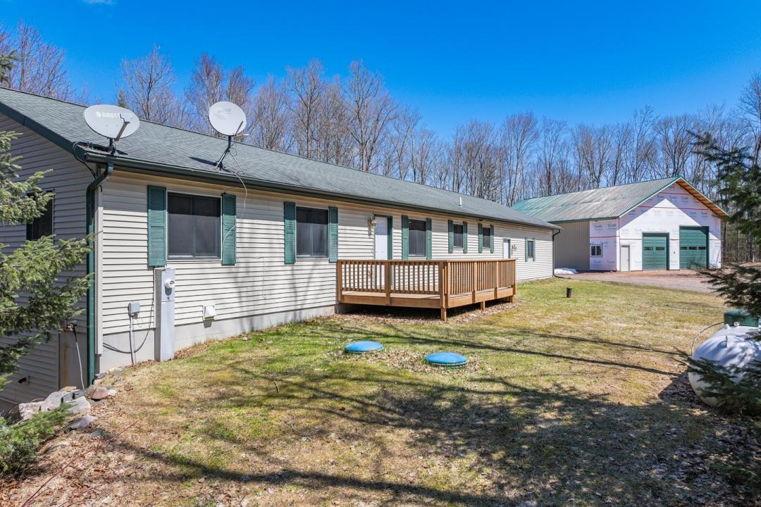 If you’ve been looking for a private Northwoods retreat that doesn’t skimp on storage and offers ultimate privacy, this is it! Tucked away on 18.7 sprawling acres of pristine woods that borders county/state land on 2 sides, you’ll feel like you have an endless backyard. Built in 2006-this home features a warm open-concept design with vaulted ceilings, new LVP flooring and large windows that frame the serene Northwoods views. The spacious kitchen offers abundant oak cabinetry and a massive peninsula that is large enough for big breakfasts, dedicated workspace and a perfect hub for entertainment. 3 big bedrooms, 2 baths and laundry on the main level. The full walk-out basement is already plumbed for a third bath, offering a blank canvas for your finishing touches. And for the outdoor enthusiast or hobbyist, the showstopper is the new 60x40 fully insulated garage—it’s got in-floor heat, is plumbed for a bathroom & kitchen, has 10x12 & 10x10 overhead doors and offers all the room you’ll ever need for your Northwoods gear. There’s also an attached, insulated & sheeted 2-car garage for daily use. Located at the end of a paved road with direct trail access to snowmobile and UTV trails, you’re just minutes from town but worlds away from the noise.