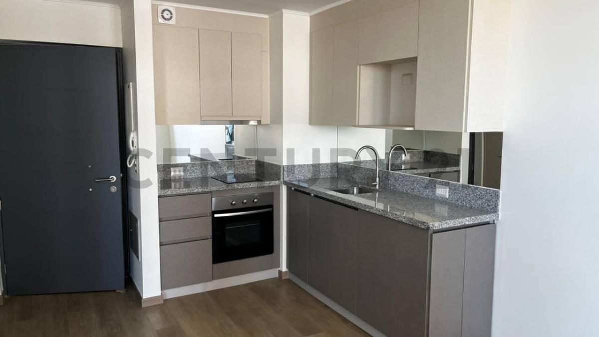 Arriendo moderno departamento nuevo, ubicado en tercer piso, con una superficie de 45 m², distribuido en 1 Dormitorio, 1 bano en suite, cocina americana y terraza con vista hacia calle San Martin. Además, cuenta con 1 estacionamiento.