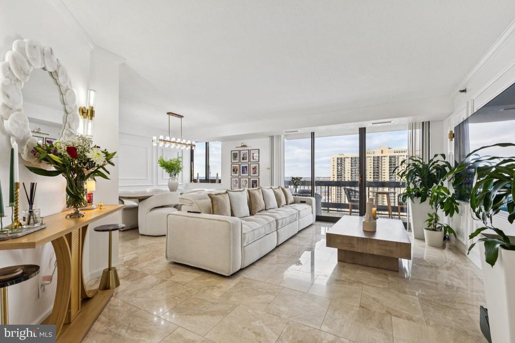 Elevated renovations ‹¢ 2-bedroom residence ‹¢ Gorgeous skyline views ‹¢ Oversized private balcony ‹¢ Marble floors in living & dining areas ‹¢ Wine bar entry ‹¢ In-unit laundry ‹¢ Walk-in closet ‹¢ Garage parking + storage!Rooftop deck, penthouse meeting room, pool, fitness center & 24-hour concierge.Welcome to Unit 1810N at Skyline Square, a rare, showcase residence offering an elevated luxury lifestyle. Recently renovated with a designer's eye, this home blends refined finishes, thoughtful flow, and breathtaking views.The entry sets the tone with a custom wine bar foyer, leading into dramatic living and dining spaces with polished marble floors and expansive windows framing sweeping DC skyline views. The renovated kitchen features quartz countertops, custom two-tone cabinetry, new stainless steel appliances, and a generous island ideal for entertaining.Enjoy seamless indoor-outdoor living with an oversized private balcony, accessible from both the living room and secondary bedroom, perfect for morning coffee or evening city lights.The primary bedroom offers a walk-in closet, upgraded en-suite and serene retreat, while the second bedroom provides flexibility for guests or a home office. The updated bathrooms feature modern finishes, and in-unit washer and dryer add everyday convenience.Additional features include one assigned garage parking space and a private storage unitSkyline Square amenities include a 24-hour concierge, outdoor pool, fitness center, tennis courts, rooftop deck, and penthouse meeting/party room. Convenient access to I-395, Route 7, and Route 50, with an easy commute to DC, Arlington, Alexandria, the Pentagon, and Amazon HQ2.Water is included in the condo fee; tenant responsible for remaining utilities.