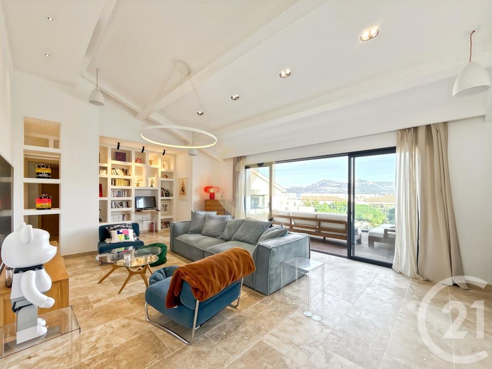 Un salon, sublimé par une belle hauteur sous plafond, prolonge l'espace de vie vers une seconde terrasse d'environ 18 m², plus intimiste.