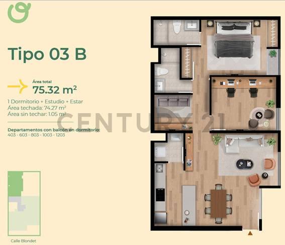 Dispone de 2 amplios dormitorios, un estudio ideal para home office, y 2 banos completos, pensados para un estilo de vida práctico y moderno. Su ubicación privilegiada permite un acceso rápido a entidades bancarias, comercios, oficinas corporativas y principales vías, convirtiéndolo en una excelente opción tanto para vivienda como para inversión.