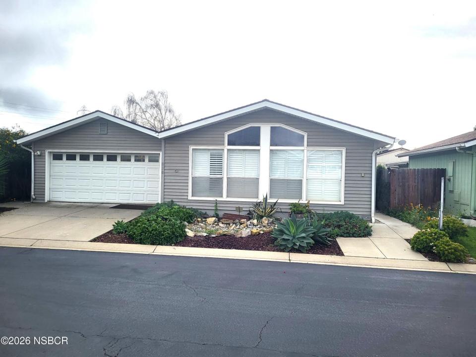 Very desirable 3-Bed, 2-Bath, 1536 sq. ft. mfg. home features the most popular split floorplan. The primary bedroom is at one end, while the other two bedrooms are at the opposite end, providing complete privacy. Located conveniently on California's Central Coast, it is set in the fantastic 55+ gated manufactured home park, Rancho Buena Vista. The home includes a Double Att Garage, an indoor laundry room, plantation shutters, and aluminum siding. The primary br. has a walk-in closet and an ensuite bathroom. The refrigerator, washer, and dryer will stay with the home. It gets better. The sunroom is perfect for entertaining, an office, or a hobby room, and it also includes an enclosed workshop. In addition, this rare find has central air conditioning. The home is being sold as-is, as reflected in the price. RBV is a close-knit community with a 9-hole pitch-and-putt golf course, heated pool and spa, and a clubhouse with a large kitchen, game room, and billiard room. RBV is always busy with activities and social events, letting you pick and choose how active you want to be.