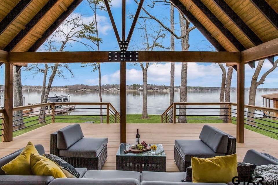 Welcome to your turnkey lake escape on beautiful Lake Cypress Springs, less than 90 minutes from DFW! This 2-bedroom, 2-bath (plus loft!) waterfront home offers the perfect blend of modern design, comfort, and breathtaking year-round views, and it’s being sold furnished, minus a small exclusions list, making it ready for immediate enjoyment or investment use. Vaulted ceilings and expansive windows flood the living area with natural light while perfectly framing the lake. The open-concept design has a stylish kitchen that features stainless appliances, designer backsplash, & island workspace making it perfect for gathering and entertaining. The primary suite is conveniently located downstairs with a full bath, offering privacy and easy access. Upstairs you’ll find an additional bedroom and full bath, plus a spacious loft area with two sets of built-in bunks — ideal for hosting guests, maximizing sleeping space, or generating strong short-term rental potential. Step outside to the oversized covered deck with dramatic wood beams and panoramic water views, adding relaxing to your “to-do” list. Whether you’re searching for a full-time lake residence, weekend getaway, or income-producing property, this Lake Cypress Springs home checks all the boxes...lake life starts here!