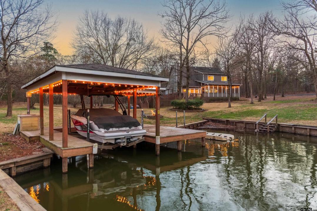 Welcome to 233 E El Dorado—an updated and well-appointed 4-bedroom, 2.5-bath home on a quiet cove on Lake Cypress Springs. Sitting on approximately an acre with added privacy from neighboring homes, this property blends seclusion with premium lakefront living. Inside, you’ll find 2,650 sq ft of thoughtfully designed space. The updated kitchen features granite countertops and opens to a spacious living area with a stunning rock fireplace and gas logs. The primary suite is located downstairs and includes a walk-in closet and private bath. Upstairs offers three guest bedrooms, a full bath, and a bonus media/game area—perfect for entertaining friends and family. Tile flooring runs throughout the main level for easy maintenance, with cozy carpet in the bedrooms and upstairs spaces. Outside, enjoy your morning coffee on the large screened porch or host lakeside gatherings on the multi-level decks. The single-stall boathouse provides easy access to the water, and the 3-car garage with concrete driveway gives you plenty of space for vehicles, lake toys, and more. Home is being sold fully furnished, making it turnkey and ready to enjoy from day one. Refrigerator, washer, and dryer are included. Whether you’re seeking a weekend getaway or a full-time lake home, this one delivers comfort, space, and classic Lake Cypress charm.