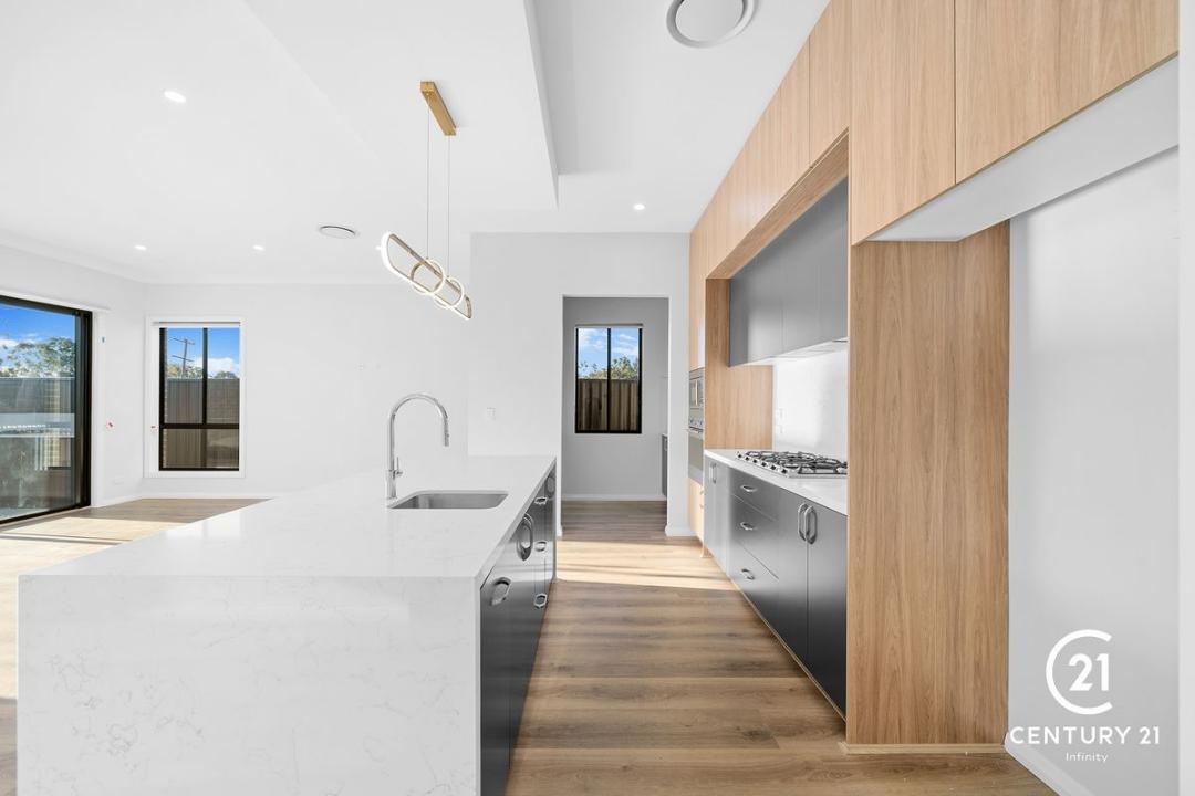 - At the heart of the home, you'll find a sleek, modern kitchen designed for both functionality and style.