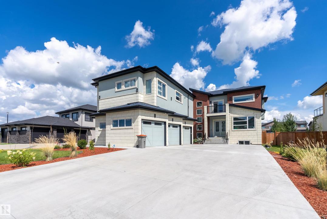 Welcome to Diamond Estates in Leduc County! This EXQUISITE MANSION with its architectural beauty & LARGE windows , on 0.33-acre lot & offers impressive apx 5667 sqft of total living space. The main floor features a living , family room, dining, & kitchen area, with a spice kitchen, main bedroom, & bathroom for elderly family and a half bathroom . There are large windows that create a spacious atmosphere, complemented by luxurious lighting & chandeliers . The custom-designed kitchen showcases real walnut wood cabinetry & high-end finishes. It includes updated electrical & plumbing fixtures & modern touches. The LEGAL GARAGE SUITE w/PRIVATE ENTRANCE, includes living room, kitchen, 2 bedrooms, a half bath, and a Jack & Jill full bathroom . The BASEMENT offers a bar, a full washroom, 2 bedrooms, and another bathroom with a living area and kitchen. Each section of the home has its own laundry. The massive backyard adds to the home's features. There is TRIPLE ATTACHED INSULATED garage.