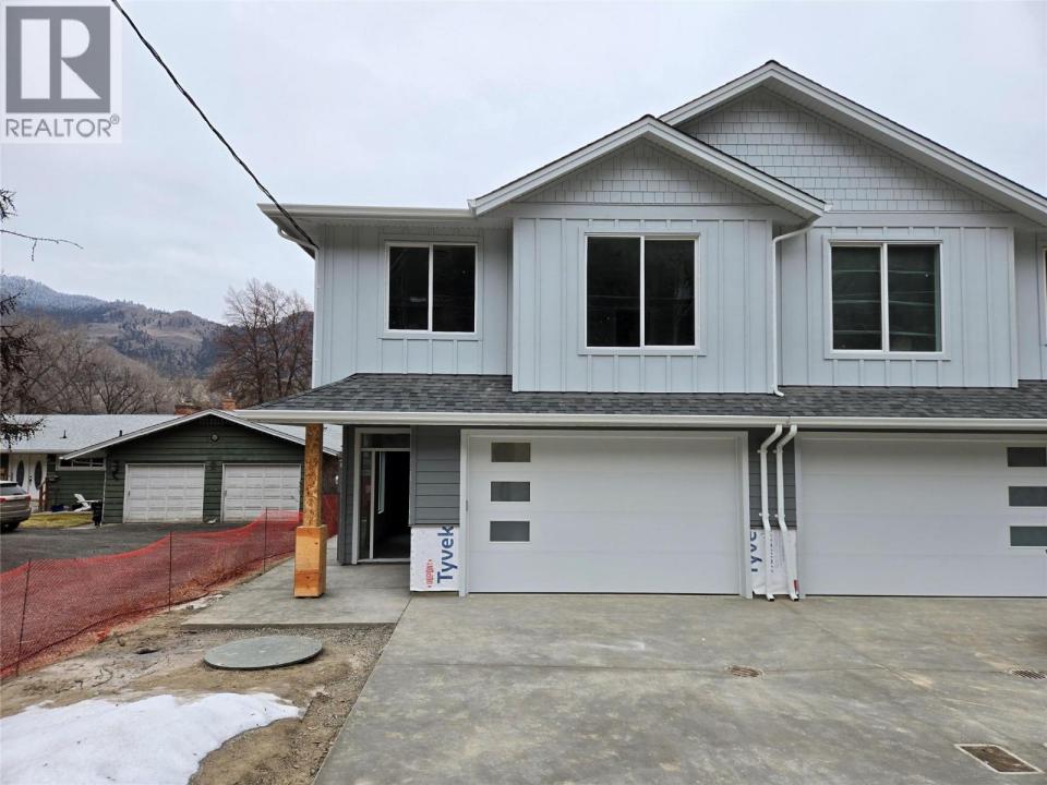 Fantastic opportunity to own a brand-new home with a legal suite. This new construction half-duplex is thoughtfully designed and has 5 bedrooms and 3 bathrooms. The main floor features a bright open-concept kitchen, living, & dining area which is great for entertaining. The kitchen has ample cupboard space + a large island with additional storage, a large pantry, & a kitchen window overlooking the backyard. In the living room there is a cozy fireplace feature with wiring for media above. Just off the living room is a deck with gas BBQ hookup and a great view of the mountains along the river. Down the hall are three bedrooms at including the primary bedroom with a large ensuite w/ tiled shower & large walk-in closet. Another full bathroom w/ bathtub rounds out the main floor. Downstairs has a wide entryway with coat closet, access to the garage, laundry room, & bedroom with lots of storage space. A separate one-bedroom, daylight, legal suite makes a great mortgage helper. The suite has a separate entrance at the side of the house and a lock off door to the main house inside. The suite has a living area, full kitchen, bathroom w/ laundry hookups, & a large bedroom. Outside there is a large backyard space & the home will come fully landscaped with UG sprinklers. Built to energy code step four this home will be very energy efficient with low costs to run. All backed by a new home warranty policy for peace of mind well into the future. Estimated completion March 2026. GST applies. (id:42016)