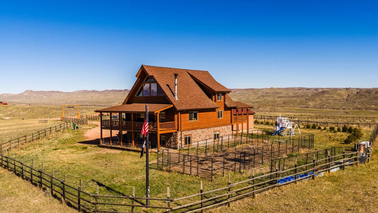 Welcome to 96 Early Creek Road, a beautifully maintained log home on just over 40 acres outside Ranchester offering privacy, sweeping views, and true Wyoming living. The home features an open layout with warm wood finishes, abundant natural light, and inviting living spaces anchored by a wood-burning fireplace and a pellet stove for efficient, comfortable heat. The fully finished basement adds valuable living space, while the home is enhanced by custom hickory cabinetry throughout. Outside, the property is thoughtfully set up with fenced areas, a good-producing well, and a year-round seeping spring-fed pond. A 1,200 sq ft shop (built in 2018) and a 1,152 sq ft barn provide excellent versatility for equipment, animals, hobbies, or workspace.
