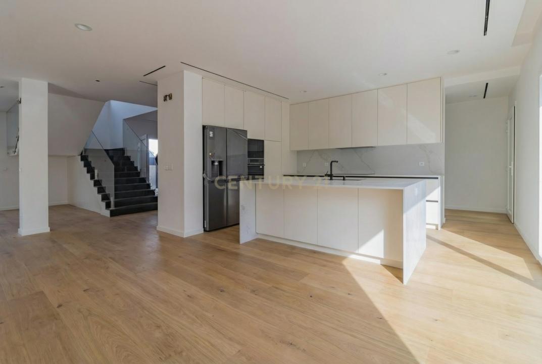 Logo à entrada, os espaços abrem-se de forma fluida e convidativa. A sala e a cozinha em open space tornam-se o centro da casa, onde conversas se prolongam, risos ecoam e os dias se partilham sem pressa. A cozinha, totalmente equipada com eletrodomésticos LG, alia design e funcionalidade, pensada para acompanhar cada momento do quotidiano.
