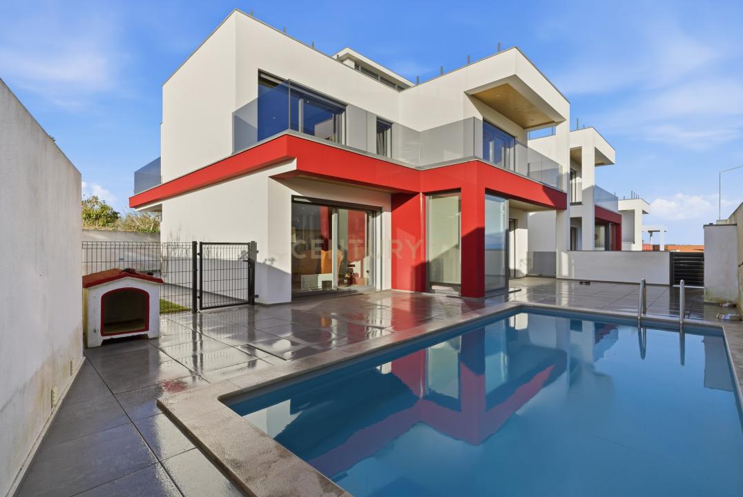 No exterior, a moradia foi pensada para usufruir ao máximo do convívio com uma piscina, jardim relvado e zona de barbecue, com forno de lenha e cozinha. No último piso, encontramos um terraço/solário, com vista de 360º sobre o mar e a serra.