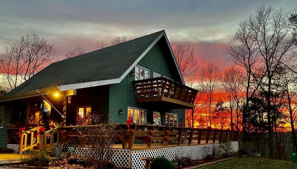 This remarkable UNRESTRICTED property spans over 17 acres in North Georgia, boasting breathtaking views of the mountains and valleys across Georgia, North Carolina, and Tennessee. Keep it all for yourself/family, or buy to subdivide/build! This acreage offers a gentle drive from the private gate to your door, with level, usable land all around and additional build sites with equally stunning views. Enjoy the views all year round, as shown in the photos. Just 4 miles from Lake Nottely and within 14 miles of Blue Ridge, Blairsville (Georgia), and Murphy (North Carolina), you'll have privacy without seclusion. Most of the property is gentle or rolling slope. A three-bedroom, two-bath home (with 2 bedrooms on the main floor) features a partial wrap-around deck on the main level and another deck upstairs for enjoying the vistas. The open floor plan includes a great room filled with windows overlooking the scenery. Wood floors and wood tongue-and-groove ceilings add charm and warmth throughout the home. Additional storage is available below grade. There's also a shed/workshop with power for your crafts and tinkering. Gather with family and friends around the firepit to enjoy starlit nights sipping wine or hot cocoa. A duel-fuel heat pump keeps the home warm even on the coldest nights, and a whole house Generac generator provides extra peace of mind. Outdoor enthusiasts can take advantage of multiple pristine golf courses, fishing, boating, hiking, and pickleball. Entertainment options include Harrah's Valley River Casino in nearby Murphy. Enjoy a variety of dining options, including excellent fine dining establishments, as well as local wineries and vineyards. Make the mountains of northeast Georgia your forever home or a glorious escape. With so much to offer, you'll never run out of things to do or ways to enjoy the natural beauty of the region. Some furnishings convey or are negotiable.
