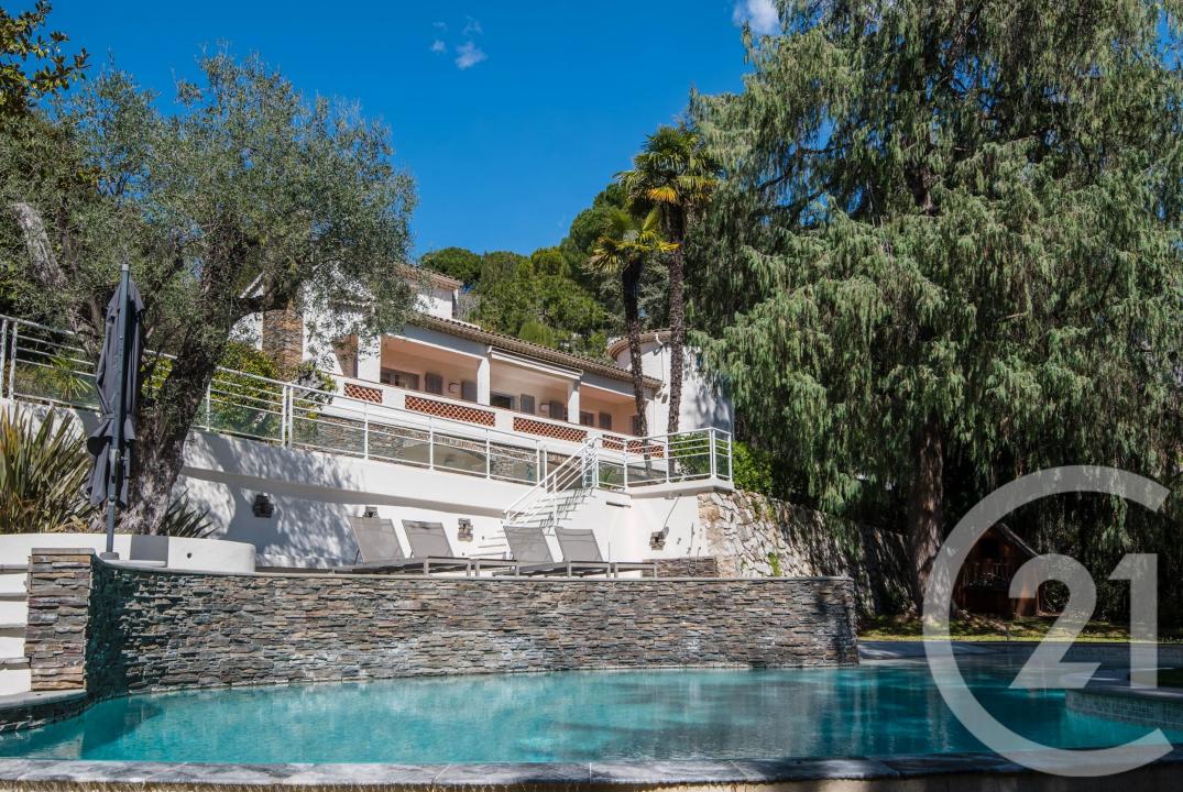 The villa is set on a landscaped and tree-filled plot of 2,560 m². It offers generous volumes and currently comprises, on the main level, a living area of nearly 80 m² opening onto a terrace, as well as 4 bedrooms, including a master suite with its own private terrace.