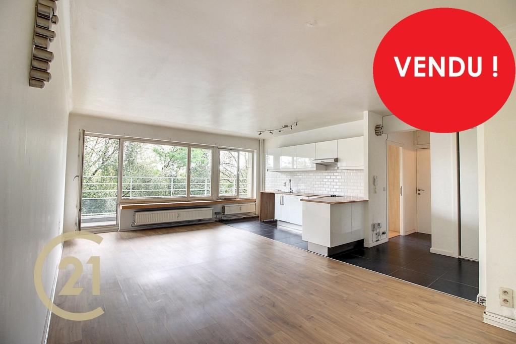 ******** SOUS-COMPROMIS STOP VISITES ************Anderlecht. Bel appartement 1 chambre de +/- 55 m² en bon état dans un agréable immeuble situé à proximité du Shopping. Il comprend : hall d'entrée avec vestiaire, wc, vaste et lumineux séjour de 32 m² avec cuisine Usa super-équipée ,une salle de douches et une chambre de 11,5m². Situé à proximité des transports en communs, du Shopping et du Ring. Installation électrique aux normes jusqu'en 2039. A ne pas rater! Peb: D-. Pour plus d'infos Century21 New Home: 02/880.22.21
