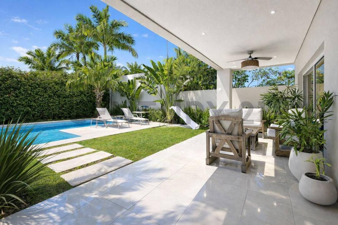 piscina y jardín.
