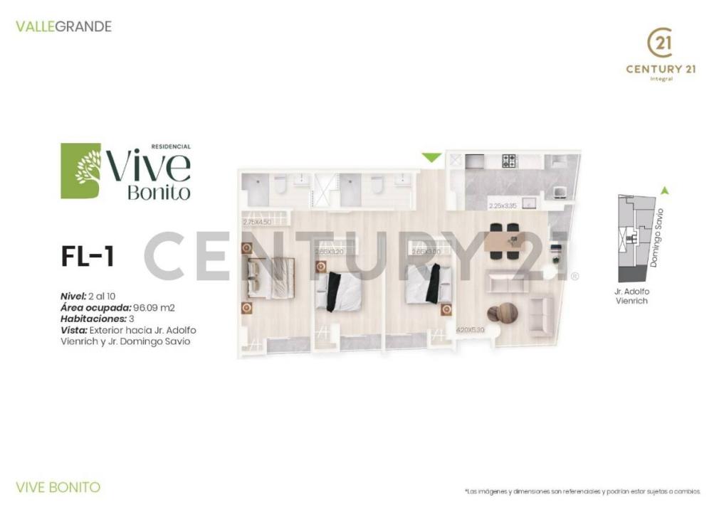Amplio y moderno departamento en el Proyecto Vive Bonito, ubicado en Jr. Domingo Savio – Urbanización San Carlos, una zona residencial y de fácil acceso.