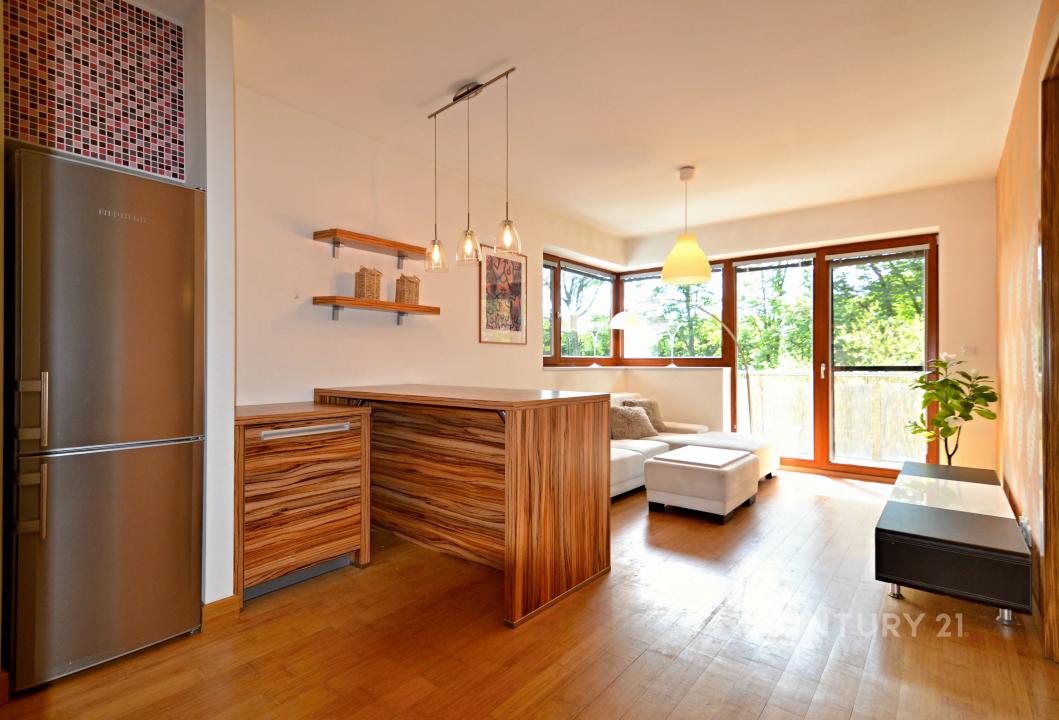 Nabízený byt má dřevěné podlahy, dřevěná okna, vytápění zajišťují radiátory a plynový kotel, koupelna je se sprchovým koutem a toaletou, kuchyně na míru zařízena a vybavena,