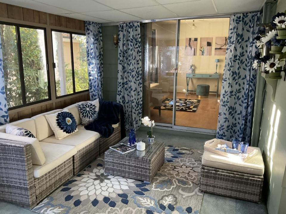Welcome home to comfort, space, and resort-style living in the desirable Forest Springs 55+ Community. This beautifully maintained 1,868 sq. ft. residence offers an ideal blend of functionality and warmth, with 2 spacious bedrooms and 2 full baths designed for easy living. Step inside to a welcoming formal living and dining area, perfect for entertaining or enjoying relaxed evenings at home. A separate family room adds everyday comfort and features a charming propane stove, creating a cozy focal point during cooler months. The dedicated office or hobby area provides flexible space for working from home, crafting, or quiet pursuits. There is also an enclosed sunroom for enjoying morning coffee or afternoon tea. Outside, you'll appreciate the oversized carport with room for multiple vehicles or covered outdoor seating, plus a separate storage shed for added convenience. Ideally positioned near guest parking, the home offers both accessibility and a sense of privacy. Forest Springs residents enjoy an active, social lifestyle with exceptional amenities, including a sparkling pool and spa, Bocce Ball courts, fitness center, card and billiards rooms, and a spacious social hall with an upgraded kitchen which is used regulary by park residents for community events. Multiple RV parking areas are also available. This inviting home offers comfort, convenience, and community involvement -- an excellent opportunity to enjoy the best of 55+ living.