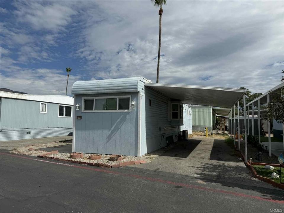 Welcome to 26250 9th St, Space 105 in Highland — a beautifully remodeled 1-bedroom, 1-bath home located in a secure gated community with 24-hour security. This cozy home offers modern finishes and a comfortable layout designed for easy living. Step into a bright, updated interior featuring new flooring, stylish kitchen cabinetry, and quartz countertops with a custom backsplash. The kitchen features a gas range, microwave, and a convenient stackable washer and dryer. The upgraded bathroom offers a sleek walk-in shower and updated fixtures. Enjoy two covered parking spaces, a community pool, and access to a park with a playground— all within a peaceful, well-maintained park. With affordable space rent and a move-in-ready interior, this home blends comfort, security, and value in one great package.