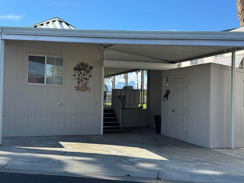 This turnkey park model is ideally located on the 2nd hole beside the green, offering stunning views of the lake and the San Jacinto Mountains. Enjoy breathtaking sunsets from the spacious L-shaped deck, complete with roll-down automatic shutters for added comfort and convenience. New deck flooring was installed in summer 2025, enhancing both style and durability. Situated within the highly desirable Rancho Casa Blanca (RCB) community, this beautifully landscaped 80-acre resort-style property features 801 individual park model homes and RV sites. Residents enjoy access to two large clubhouses serving as vibrant social hubs, along with four satellite buildings offering laundry facilities, mailboxes, heated pools, and relaxing spas. Ownership includes FREE GOLF on the 18-hole par-3 golf course, a 9-hole putting course, multiple practice chipping and putting greens, six heated pools and spas, tennis and pickleball courts, shuffleboard, horseshoe pits, a fully equipped fitness center, and over 60 clubs and classes. For added peace of mind, the community is guard-gated with regular security patrols. Whether you prefer an active lifestyle or peaceful relaxation, Rancho Casa Blanca offers the best of both worlds—made even easier by golf cart living. Occupancy is limited to 270 days per calendar year (not consecutive).