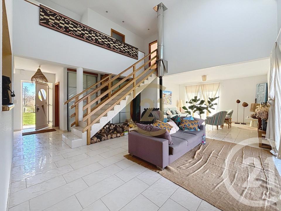 - Au rez-de-chaussée ; d'une vaste entrée avec placards de rangements, une grande pièce de vie lumineuse avec poêle à bois donnant accès à la terrasse, une cuisine indépendante entièrement aménagée et équipée donnant accès à une buanderie, une chambre avec une salle d'eau, un WC séparé et un accès au garage double.