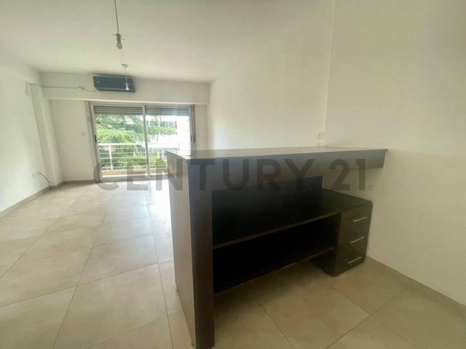 - El ambiente principal integra sector living/dormitorio. Con placard empotrado, aire acondicionado y salida a balcón, lo que aporta luminosidad y ventilación natural.