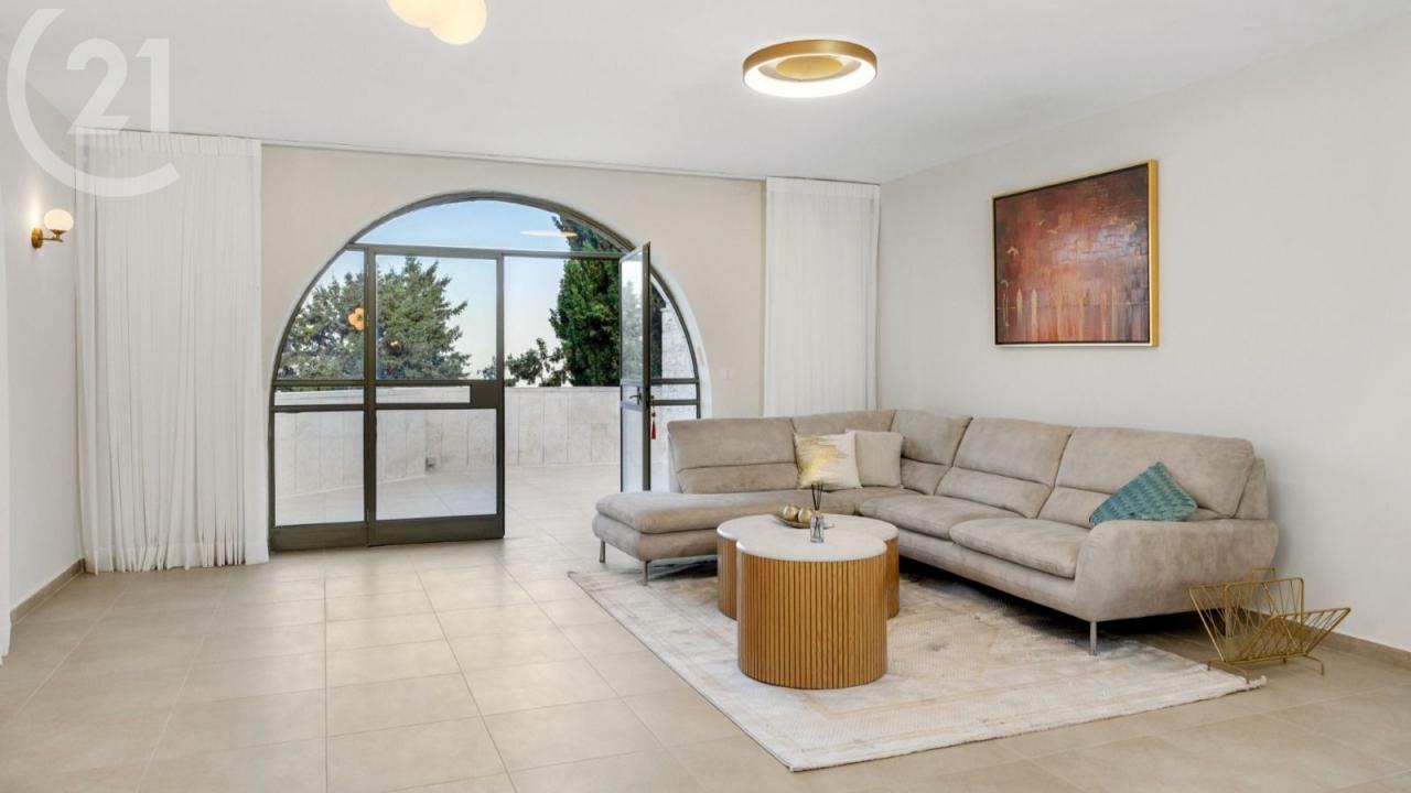 190 sqm of interior space plus 110 sqm of sukkah balconies facing a stunning view toward the Old City. Features 4 bedrooms.