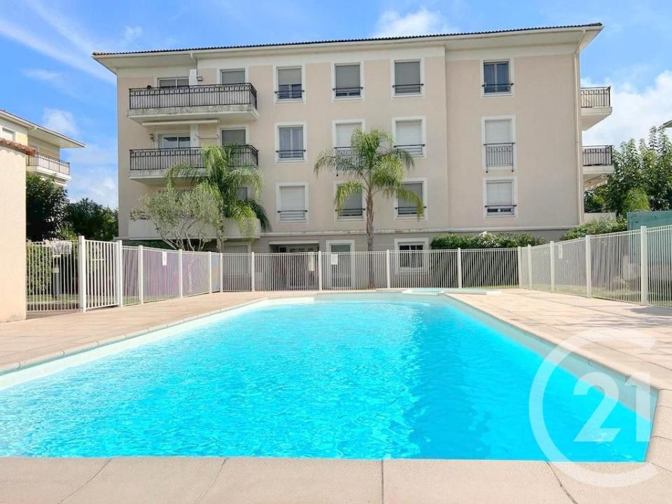 A louer appartement climatisé, meublé et équipé, dans jolie résidence avec piscine, proche de Polygone Riviera agréable appartement d'angle de 3 pièces principales en excellent état et au calme, traversant avec une exposition principale au Sud/Ouest ce qui le rend très lumineux, il se compose d'une entrée avec placard, d'un séjour avec cuisine US aménagée et équipée avec terrasse, de deux chambres avec placard et une avec balcon, une salle de douche et des WC indépendants.