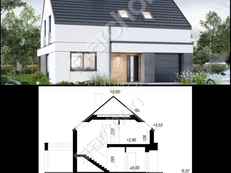 First floor: Area: 93m² + veranda with an area of 26m², organized with a distributing corridor, 3 bedrooms, two bathrooms, and a veranda