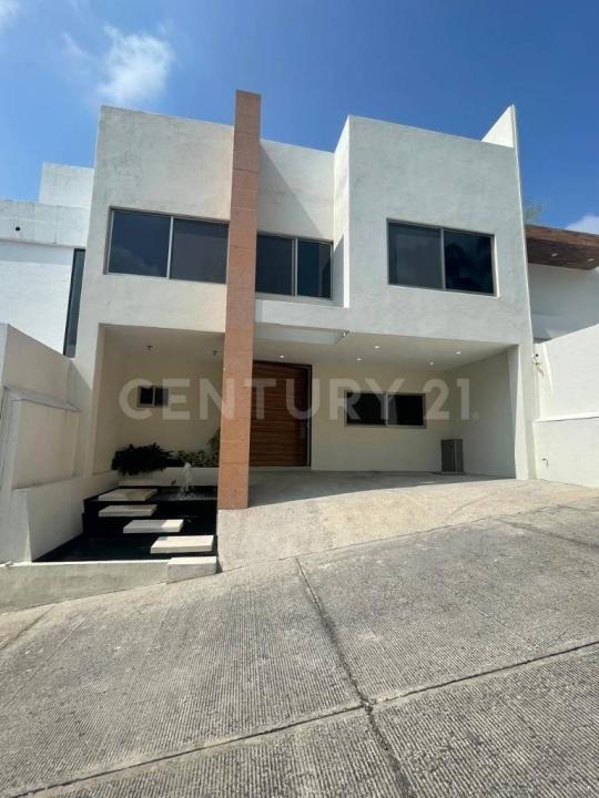 Atractiva casa nueva en condominio residencial de solo 10 casas, con vigilancia privada, portón eléctrico y CCTV. Estacionamiento para 2 autos. Acceso con decorativo espejo de agua iluminado, en PB recamara con bano completo, closet, y tocador, bano de visitas, estancia con techo a doble altura, cocina equipada, barra desayunador, despensa, patio de servicio, jardín, y muro llorón en el exterior. En el 1er nivel amplio family room con pared forrada de cantera iluminada; recamara principal con vestidor, bano privado y terraza y otra recamara con vestidor y bano privado. En el segundo nivel tiene un roof garden, bano de visitas y barra y contra barra. A Resaltar detalles de lujo: Techo a doble altura con plafón perimetral iluminado, cocina totalmente equipada, muebles de bano de diseno contemporáneo, espejos iluminados, pisos de porcelana, etc.