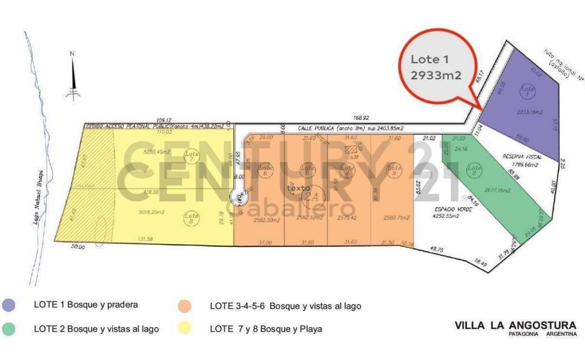 CARACTERISTICAS : Lote con Frente sobre Ruta 40, con 42 m de frente sobre ruta, cuyo fondo da a lote destinado a Reserva Fiscal por lo cual será siempre bosque, ubicado en exclusivo loteo de solo 8 lotes con acceso directo a playa sobre lago Nahuel Huapi por calle de uso común, desarrollados sobre una fracción de 3,5 ha con acceso directo desde Ruta Nacional 40 ( Ruta de acceso a Villa La Angostura) y separan del acceso a la costa solo 350m. Entorno excelente de propiedades de categoría y el reconocido Barrio Cerrado Muelle de Piedra