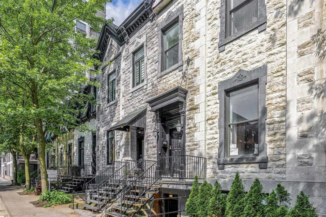 Charming greystone duplex in Shaughnessy Village, built in 1875 and full of historic character. Recognized as a duplex with the city but currently used as a single family home, it features 10-foot ceilings, 2 spacious upstairs bedrooms, each with private ensuites, and 2-car parking. The lower level has a bachelor unit with separate entrance, kitchen, and full bathroom, ideal for use as an intergenerational for family or as a separate rental. Located in a vibrant downtown Montreal neighbourhood, this is a rare chance to own a piece of the city's heritage.