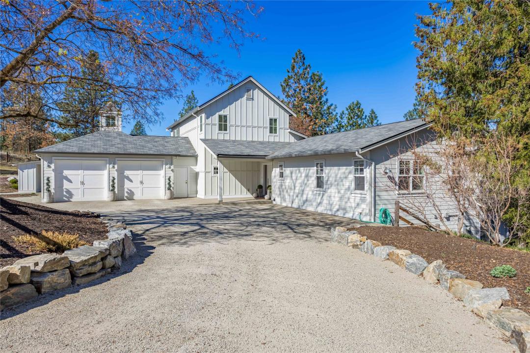 Tucked away on 4.25 private acres in Southeast Kelowna, this modern farmhouse offers refined living and complete seclusion. Thoughtfully designed and surrounded by nature, this property feels worlds away, yet remains effortlessly connected to everything that matters. Welcome to your private sanctuary in Southeast Kelowna, where nature and everyday luxury come together. Mature trees surround this modern farmhouse, and 5,600 sq ft of living space set the stage for quiet moments or lively gatherings. The heart of the home is the kitchen, which features double islands, quartz counters, and a spacious walk-in pantry. The vaulted ceiling in the dining and living areas, with white-washed beams, a brick fireplace, and a sparkling crystal chandelier, exudes warmth and style. French doors open onto a wraparound patio, an in-ground pool, and a fire pit framed by lush landscaping, inviting you to relax and unwind in complete privacy. The main level offers two bedrooms with en-suite bathrooms, walk-in closets, a den, laundry, and a mudroom for convenience. Upstairs, the primary suite is a private retreat, complete with a spa-like ensuite and a balcony overlooking the property, your perfect spot for a morning coffee or evening wine. The lower level features a second kitchen, multiple living areas, and two additional bedrooms. A heated double garage with front and rear access, plus a basement entry, adds extra convenience. This is more than just a home, it’s a lifestyle!