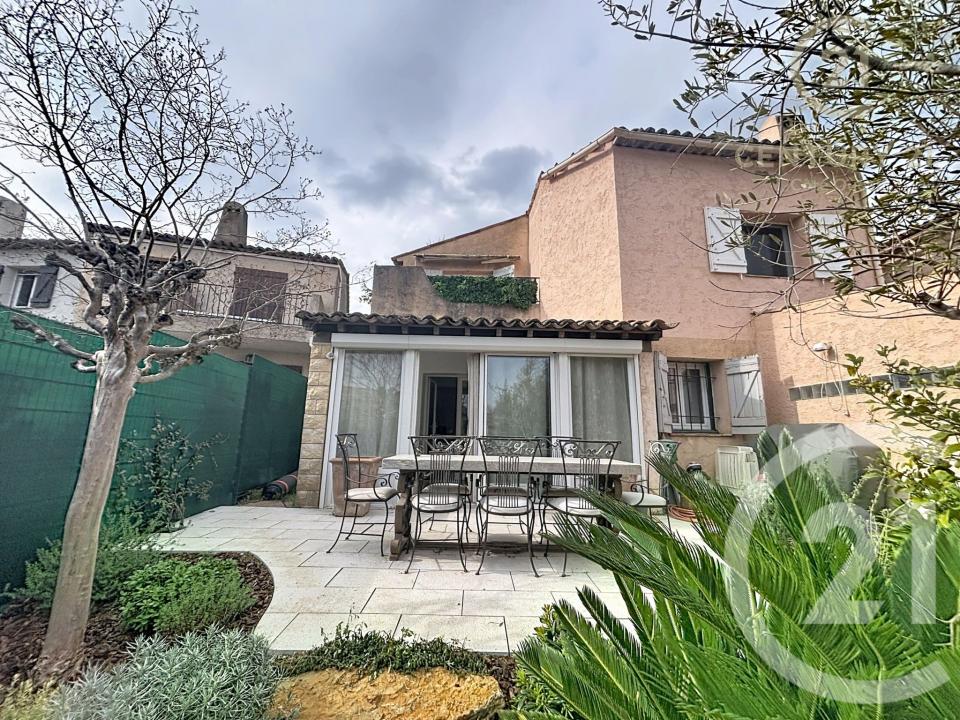 À l'extérieur : d'un jardin privatif de 105 m², d'une place de stationnement privatif, d'une piscine sécurisée et des espaces verts.