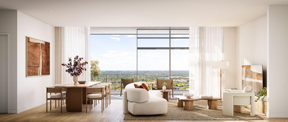 Enjoy sweeping outlooks over Parramatta CBD, parklands and river corridors