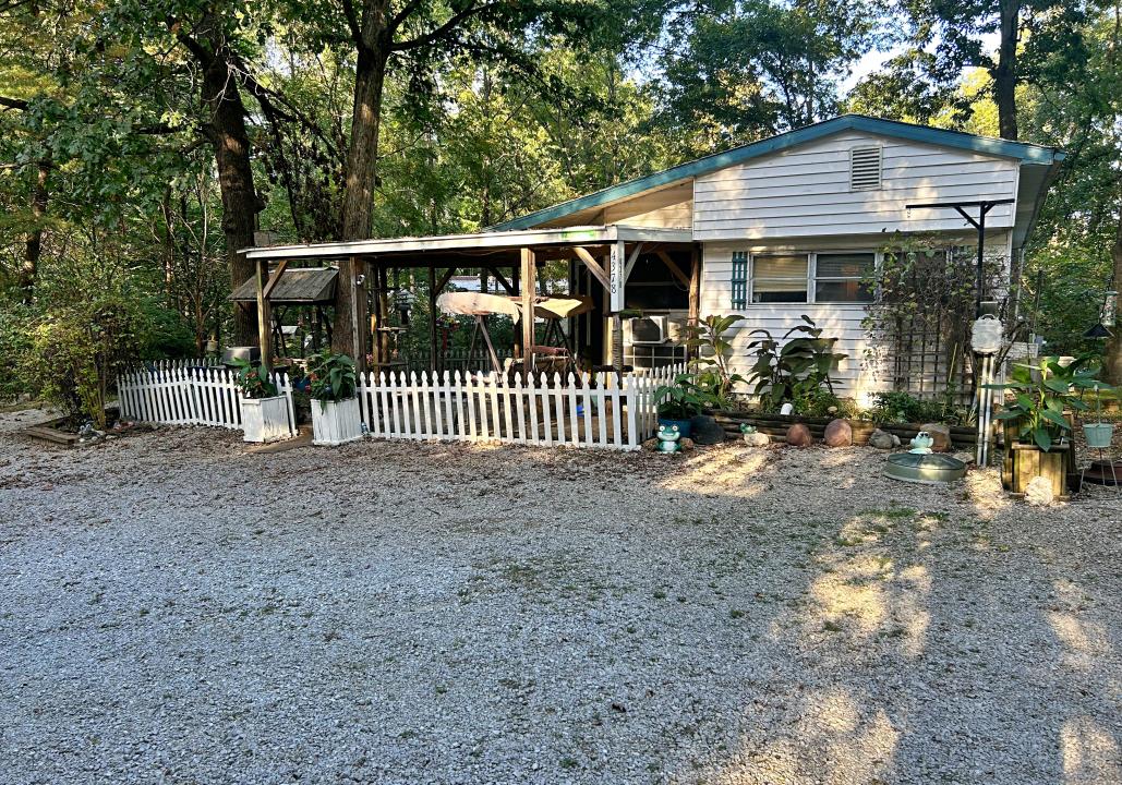Enjoy this West Boggs Lake retreat! This mobile home includes living room, dining room, and kitchen with lots of cabinetry, counter space, breakfast bar, and all appliances included. Main bedroom features an impressive full wall built-in wardrobe, the full bath also has plenty of storage and a soaking tub with air jets, spare bedroom if needed, plus enjoy your morning coffee in the spacious 4-season sunroom. Spend your evenings on the porch, entertain around the firepit, or venture down the path to the lake. Dock and 2 covered boat slips included! Plus, a fenced yard area, a 2.5-car detached garage with lean-to, and 3-sided carport for all your water toys.