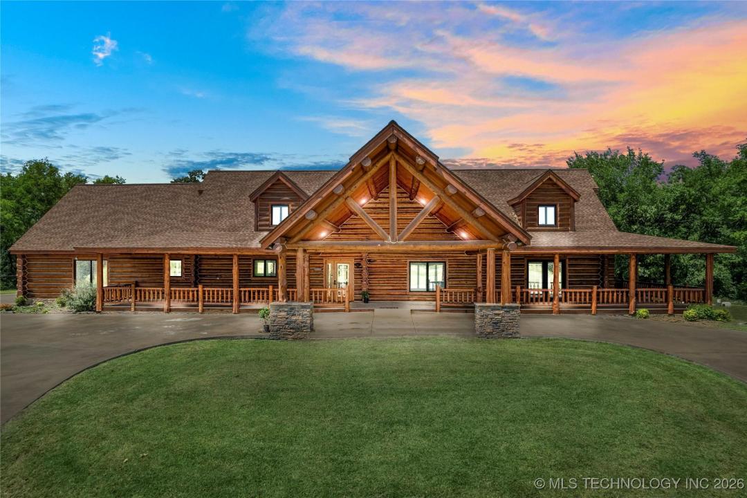 Custom Log Home nestled on 20 acres of pasture and trees with private pond - it has the peace and quiet most people yearn for yet offers a short and convenient drive into Broken Arrow/Tulsa. This large family homes also offers a great covered porch for your family to gather with additional breezeway - plus a wood burning fireplace, 3 bedrooms, four full baths, granite countertops, wood floors, game room - and so much more. If you enjoy quiet relaxing times at home - this is the home for you. And when you have the time and need to entertain - this home is for you. It's a total package - just waiting for you. Property is in a flood zone.