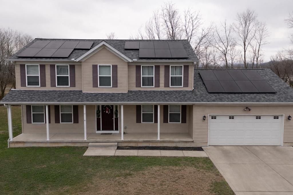 So. Much. Space. This well-designed 6-bedroom, 4-bath, two-story home offers 3,520 square feet of living space. Built in 2016 and thoughtfully laid out for both everyday living and entertaining, this beauty is located on a quiet dead-end street and within walking distance to the Ohio River. The main level features a large open-concept living area that flows seamlessly into the dining space and kitchen. You'll also find a main-floor bedroom, a dedicated office, and a laundry room for added functionality. Upstairs, the home offers four generously sized bedrooms, including the primary suite with a private bath, providing privacy and a comfortable retreat at the end of the day. The finished basement adds incredible flexibility with additional living space, a bedroom, and a full bathroom, making it ideal for guests, extended family, or a recreation area. This move in ready home has solar panels for cost saving efficiency, a new roof, attached garage, large deck, and a storage building.