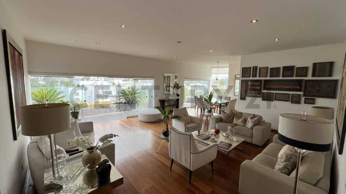 En el exclusivo entorno de Cerros de Camacho, con privilegiada vista al Club de Golf Los Inkas, se encuentra esta extraordinaria propiedad que combina la privacidad y amplitud de una casa con la seguridad de un edificio exclusivo.