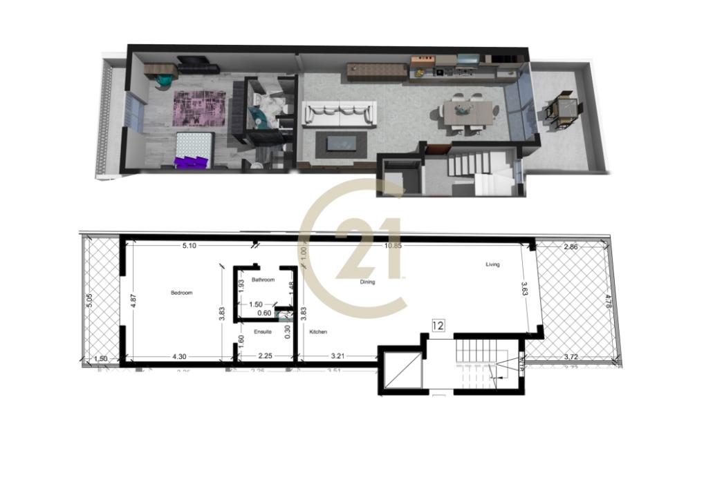 GZIRA - A 6th floor penthouse nestled in a newly constucted block just metres away from the enchanting gzira/sliema promenade. Boasting side sea-views is this penthouse which is a jewel in a highly sought after rental area. As you step into this exclusive residence, you are greeted by a spacious designed open plan layout kitchen/living/dining area, main bedroom, main bathroom, back and front terraces with panoramic views to experience and capturing the essence of the surrounding area. This property is a symbol of modern elegance and sophistication having a prime location and impeccable finishes.