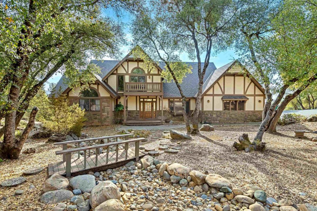 Welcome to Apple Valley Estates, a beautiful community in the Sierra Foothills. This lovely Tudor home is nestled on nearly ¾ acre. It features hardwood floors, soaring ceilings, plentiful storage, and windows that flood the home with natural light. With three levels it is perfect for entertaining a crowd. This home has 4 bedrooms, 3 ½ baths, a formal dining room, laundry/mud room, and a finished basement/bonus room-a great place for guests, movie nights, or a dedicated play/game room. The primary bedroom is a serene retreat on the main floor. Here, you will find an expansive en suite bath, featuring a jetted tub and walk-in closet. From the bedroom, you can access the deck and enjoy the views. The 3 generously sized bedrooms all have large closets. Upstairs, the front bedroom will charm you with sliding doors that lead to a Juliette balcony! The spacious kitchen will delight any chef, and the formal dining room is conveniently located for easy entertaining. Enjoy your morning coffee on the expansive deck-with four sets of sliding doors, it’s easy to access from the entire main level. This home has had many upgrades in the past 4 years: a whole-house generator for peace of mind, a cast-iron pellet stove to keep things warm in the winter and a whole house fan. Come take a look!