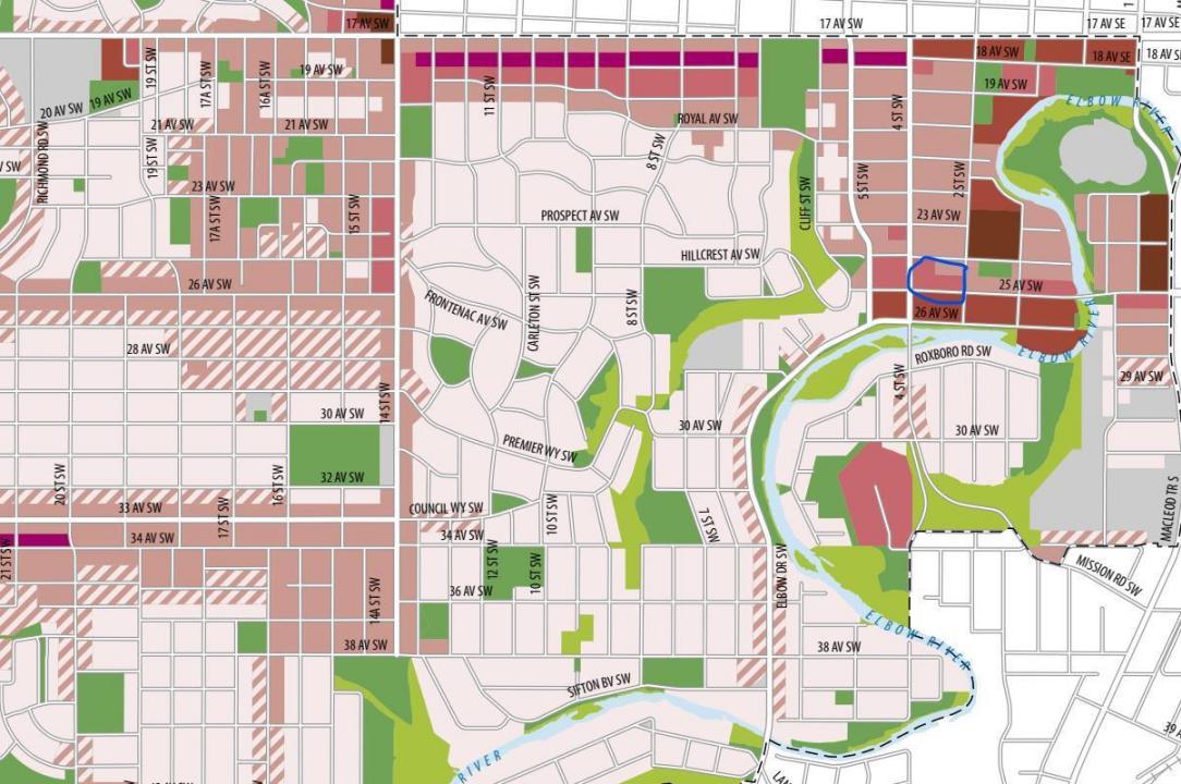 walking/cycling path system. Four houses with 100 ft of frontage 306,308,310,312 - 25 ave sw that have to be all purchased together. The city has recently changed ( LAP )and allows for up to 12 stories to be built. Potential buyer will need to rezone to align with the LAP. Local Area Plan Dashboard